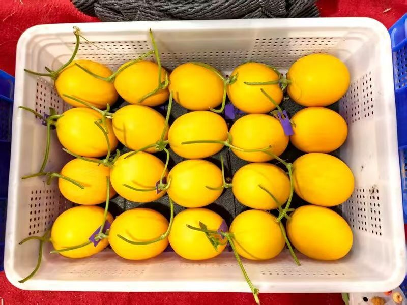 海南果鮮生農業開發有限公司自主培育的“金蛋蛋”蜜瓜。