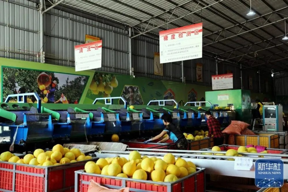 分揀與加工環(huán)節(jié)的突破,更讓沙田柚價(jià)值鏈大幅延伸。在松山鎮(zhèn),容縣田柚甄源農(nóng)業(yè)發(fā)展有限公司投資1200萬元建成廣西最大的沙田柚分揀中心,通過無損檢測生產(chǎn)線,沙田柚可實(shí)現(xiàn)清洗、風(fēng)干、農(nóng)殘檢測、糖度檢測等一條龍“體檢”,自動分為A、B、C等級。“果子下樹地頭價(jià)每斤4元左右,但經(jīng)過檢測后的A級果能賣到每斤8元或以上。”公司負(fù)責(zé)人馬飛燕說,“通過品質(zhì)分級,實(shí)現(xiàn)了市場分級。”現(xiàn)代化分揀技術(shù)的運(yùn)用,還幫助容縣沙田柚成功獲得供深及供港基地認(rèn)證,進(jìn)入高端市場。