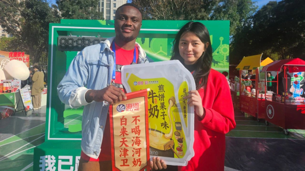 “這個小蛋糕太好吃了,在補給站我就吃了一個,特別香甜軟乎,特別像我小時候吃的爐元。”土生土長的天津人趙女士參加的是半馬比賽,她對小蛋糕情有獨鐘,津津有味地吃了起來。“這是我們今年為天馬精心制作的一款‘天津味道’,既有老味兒爐元的傳統工藝,又有改良和創新,獨立小包裝就為跑友特制的。”桂順齋公司市場部部長陳菲菲說道。“我的目標就是完賽,而且今年成績比去年好,已經是個人PB啦,好開心呀。”來自廣東的陳先生在全馬完賽區相中了一款印有“天馬”logo的奶黃流心餅。“包裝的設計本身就很吸引我,是‘獅子加擎天柱’造型,流心餅又特別適合我這個南方人的胃,我還要買幾盒帶回去給孩子吃。”“今年我們是第一次助力‘天馬’,帶來的是‘醒獅’系列的點心,‘勇攀高峰’的主題也和‘天馬精神’不謀而合,寓意不斷突破、奮勇前進。”同是廣東人的祥德齋公司運營總監陳憲彪激動地說道。來自不同國家的跑友們在完成各自比賽后,紛紛開啟了蛋白質、碳水、糖分的補充。麻醬貝果、煎餅果子味牛奶、裹著膠原蛋白腸衣的“活力玫瑰”小腸等等都成了搶手貨。“依托集團豐富的食品產業鏈資源,精心籌備,從源頭嚴控原料質量,確保每一份補給食品都能達到自然純凈、營養均衡、安全健康的標準,集團肩負的不僅是產品供應的責任,更有推動健康生活方式傳播的重要使命,希望給廣大跑友留下難忘的關于‘天津味道’的回憶。”集團總經理助理,利達糧油公司黨委書記、董事長戈立新說道。