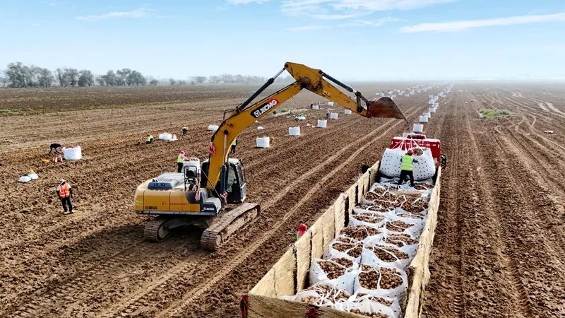 走進(jìn)馬鈴薯集中連片種植區(qū),數(shù)臺(tái)現(xiàn)代化聯(lián)合收獲機(jī)來(lái)往穿梭,一顆顆形狀飽滿、個(gè)頭均勻的馬鈴薯如同跳動(dòng)的音符通過(guò)鏵犁從地下跳出,經(jīng)過(guò)傳送帶歡快地躍進(jìn)拉運(yùn)車(chē)廂,一車(chē)車(chē)馬鈴薯被陸續(xù)運(yùn)往加工廠或冷庫(kù)。