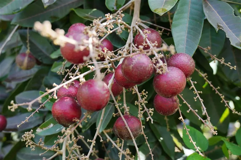 “這種紅皮龍眼叫‘玫瑰紅’,從外觀到口感都讓人印象深刻。”農莊負責人劉華養介紹,其果實呈圓球形,表皮呈玫紅色,果肉甜度高且帶有獨特的蜜香味,更獨特的是具備“花果同樹”特性——同一棵樹上既有盛開的花朵,又有成熟的果實。“果實成熟后,游客可直接采摘,熟一串摘一串,保證新鮮。”
