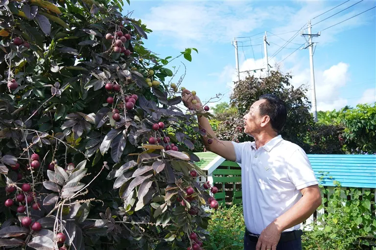 除紅皮龍眼外,農莊還從美國引進黃晶果、番石榴等近20個水果品種,構建四季有果的采摘體系。