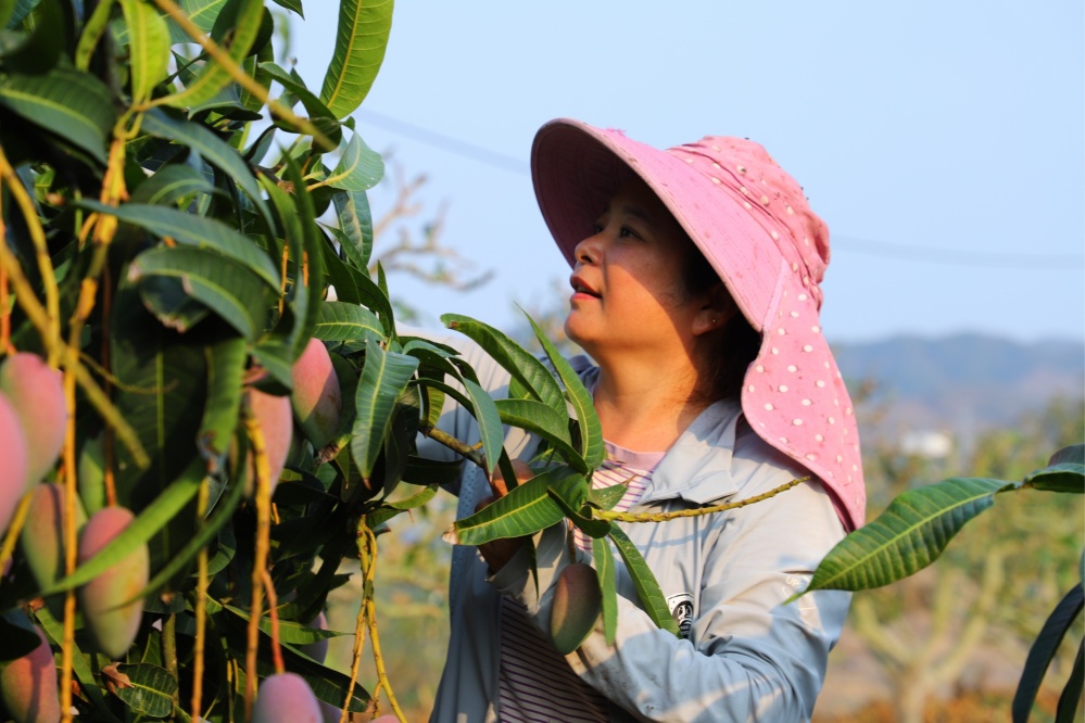果農(nóng)正在采摘芒果(央廣網(wǎng)發(fā) 甘景軒 攝)