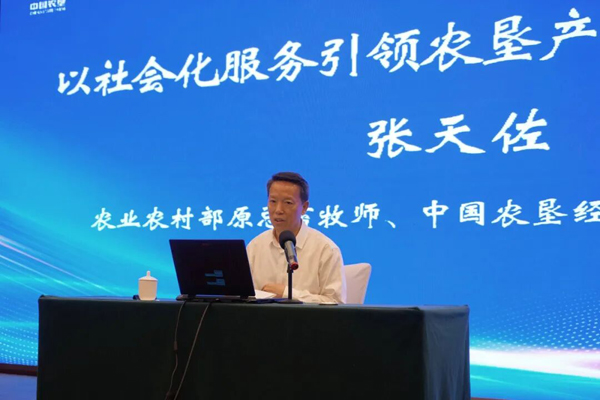 張?zhí)熳糇黝}為《以社會化服務引領農墾產業(yè)高質量發(fā)展》的主旨報告。報告從農業(yè)生產的基本經營形式、農業(yè)現(xiàn)代化的本質、中國式農業(yè)現(xiàn)代化路子怎么走、如何加速我國農業(yè)現(xiàn)代化進程、社會化服務發(fā)展具備的機遇等六個方面進行了系統(tǒng)闡述,強調“要大力發(fā)展專業(yè)化社會化服務,使之成為引領農墾產業(yè)高質量發(fā)展的牛鼻子”,所提出的推進社會化服務發(fā)展的8個策略和方法為深化農墾社會化服務、推動產業(yè)升級提供了重要的指導和參考。