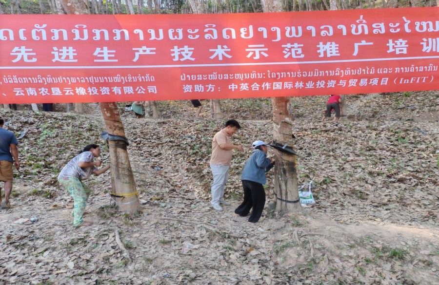 本次活動共有來自老撾南塔省梭都村和波喬省南布村的60名膠農參加,得到中英合作國際林業投資與貿易(InFIT)項目辦公室資助。活動的成功舉辦,有力推動了我國天然橡膠“管、養、割”先進生產管理技術在老撾的示范推廣,提升了當地膠農割膠管膠的科學性和規范性,助力培養了一批有技術、有能力的技能人才,為老撾天然橡膠產業可持續發展注入了新動能。